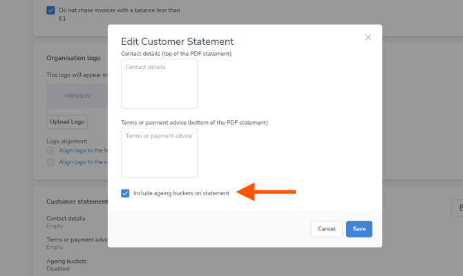 3. Select Include ageing buckets in statements and then select Save