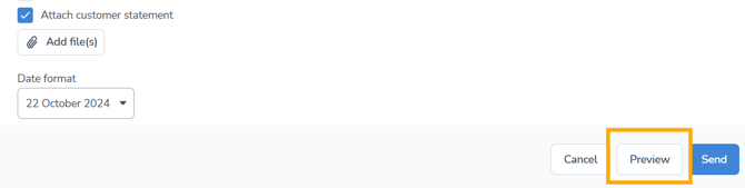 Attach the relevant invoice or customer statement using the checkboxes below the email copy.