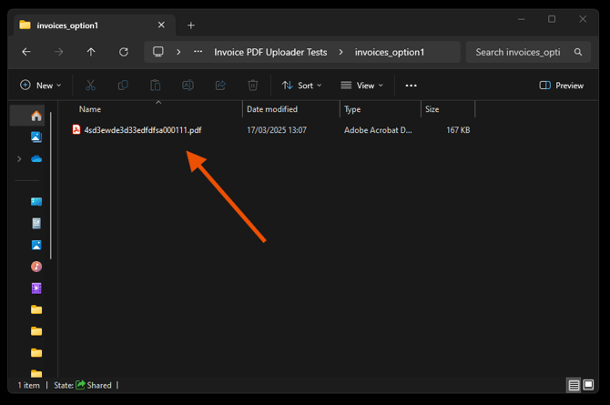 Export your bulk invoices pdf from your accounting system and save it to your desktop folder. In the example below is the invoices file Invoice_to_split.pdf. For Option 4, the file name is irrelevant, you can place it in the folder 'as is' exported from your accounting system.
