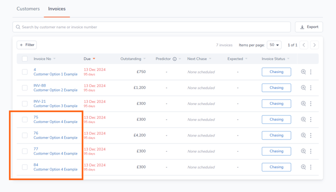 - Option 4 is ideal for bulk export documents (PDFs containing multiple invoices). It uses a unique identifier to split the invoices into separate documents, which can then be either sent to Chaser or saved directly to your device without using the Chaser API.