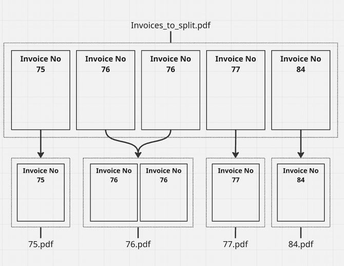 Below is a diagram example of how you would expect the invoice PDF manager to split the Invoices_to_split.pdf document: