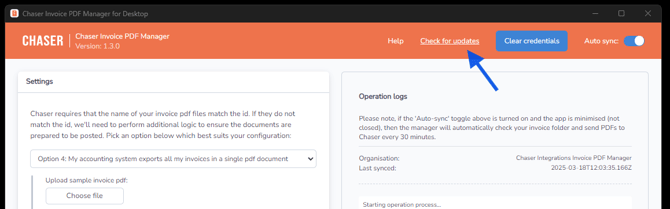 Within the invoice PDF manager there is an option to Check for Updates to see whether you are running the latest version. The application will also check for updates every time it is restarted: